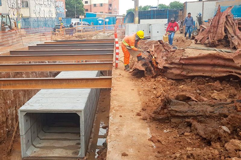Obra de emergência para recuperação da canalização de águas pluviais sob a via marginal Pinheiros pista expressa / sentido Osasco, próximo as obras da nova estação Morumbi – linha 17 ouro, pelo método não destrutivo – MND. – São Paulo / SP